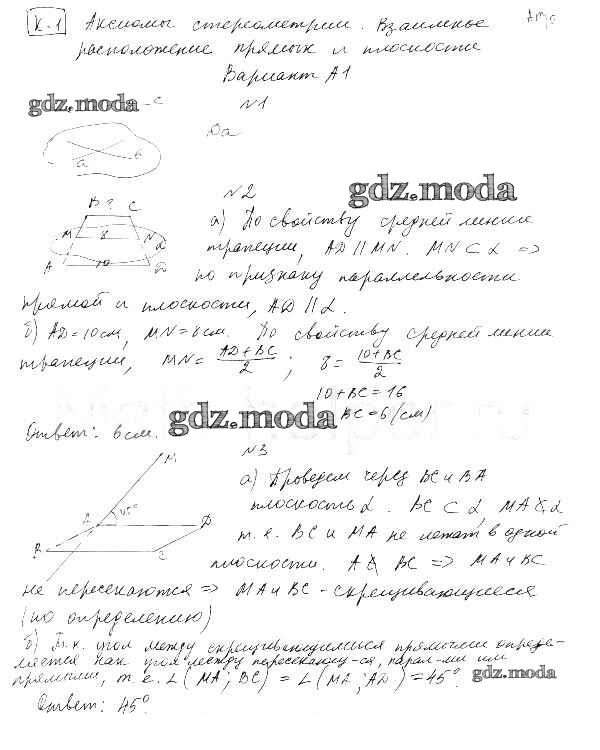 ГДЗ решение к заданию № 1 Геометрия 10 класс самостоятельные и контрольные работы Ершова А.П. Илекса 2014 ФГОС бесплатно на гдз.мода!