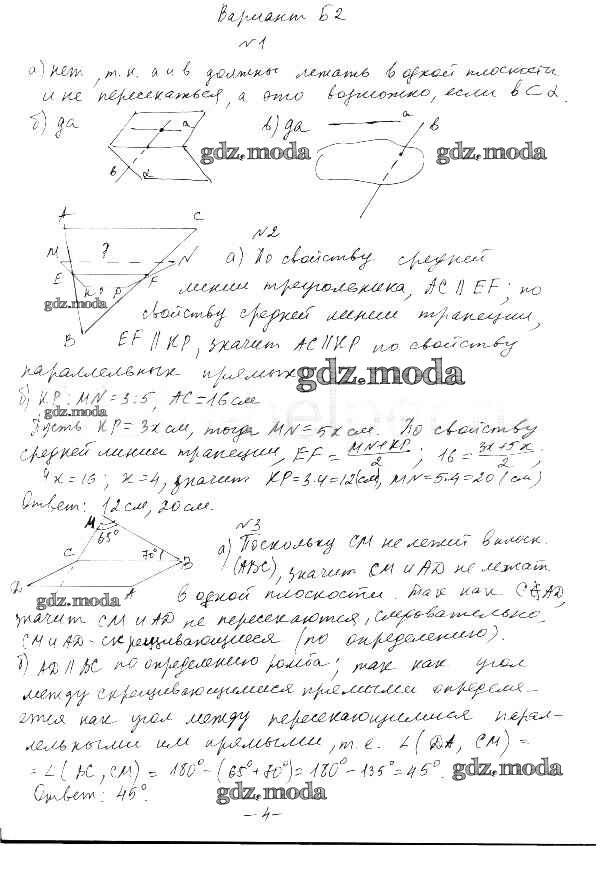 к учебнику Атанасяна / контрольная работа / кр-1. вариант / 4