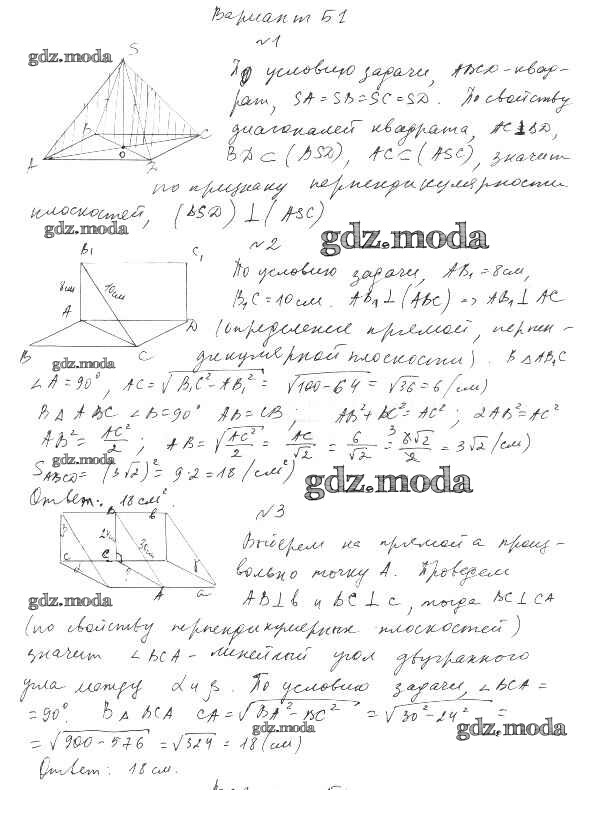 ОТВЕТ на задание № 3 Самостоятельные и контрольные работы по Геометрии 10 класс Ершова