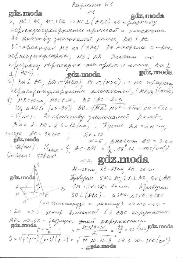 ОТВЕТ на задание № 3 Самостоятельные и контрольные работы по Геометрии 10 класс Ершова