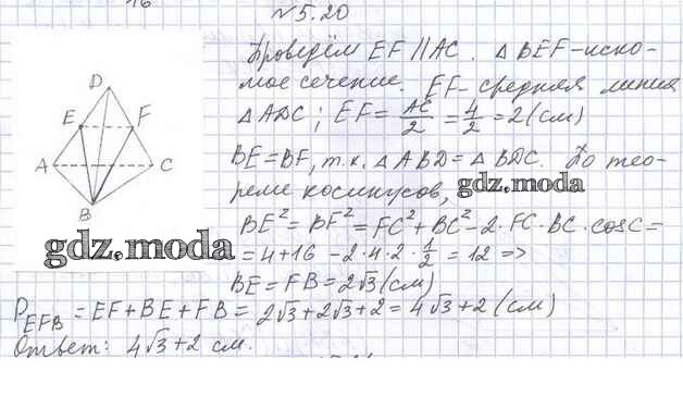 ГДЗ решение к заданию № 5.20 Геометрия 10 класс Мерзляк А.Г. Вентана-граф 2017 Базовый уровень ФГОС бесплатно на гдз.мода!