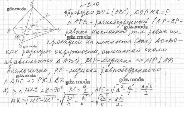 ГДЗ решение к заданию № 8.10 Геометрия 10 класс Мерзляк А.Г. Вентана-граф 2017 Базовый уровень ФГОС бесплатно на гдз.мода!