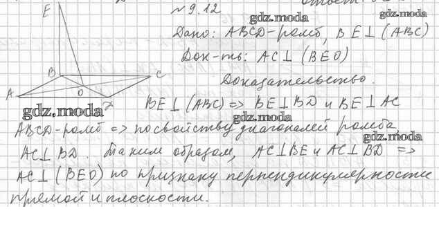 ОТВЕТ на задание № 9.12 Учебник по Геометрии 10 класс Мерзляк Алгоритм успеха Базовый уровень