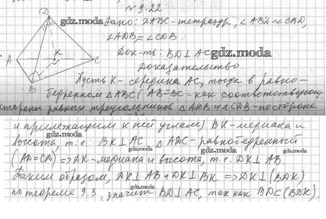 ОТВЕТ на задание № 9.22 Учебник по Геометрии 10 класс Мерзляк Алгоритм успеха Базовый уровень