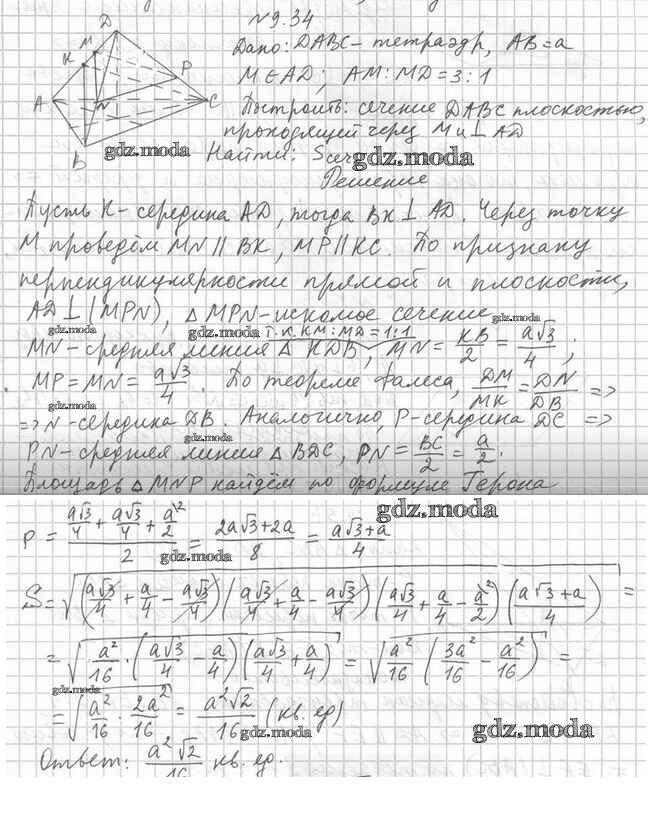 ГДЗ решение к заданию № 9.34 Геометрия 10 класс Мерзляк А.Г. Вентана-граф 2017 Базовый уровень ФГОС бесплатно на гдз.мода!