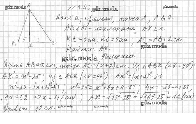 ГДЗ решение к заданию № 9.40 Геометрия 10 класс Мерзляк А.Г. Вентана-граф 2017 Базовый уровень ФГОС бесплатно на гдз.мода!