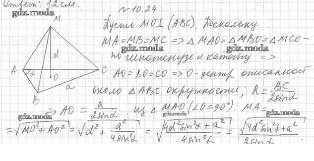 ОТВЕТ на задание № 10.24 Учебник по Геометрии 10 класс Мерзляк Алгоритм успеха Базовый уровень