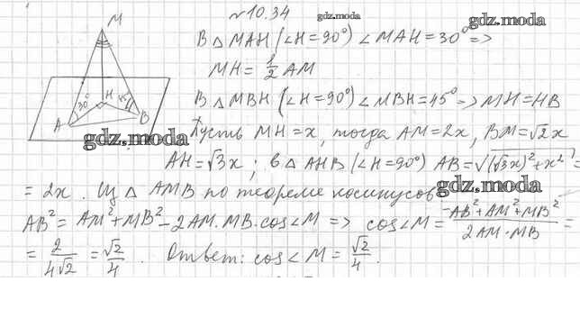 ГДЗ решение к заданию № 10.34 Геометрия 10 класс Мерзляк А.Г. Вентана-граф 2017 Базовый уровень ФГОС бесплатно на гдз.мода!