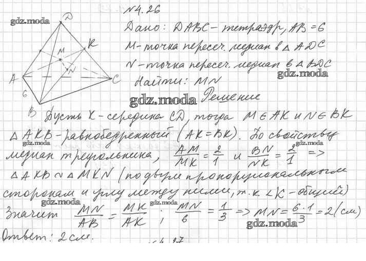 ОТВЕТ на задание № 4.26 Учебник по Геометрии 10 класс Мерзляк Алгоритм успеха Углубленный уровень