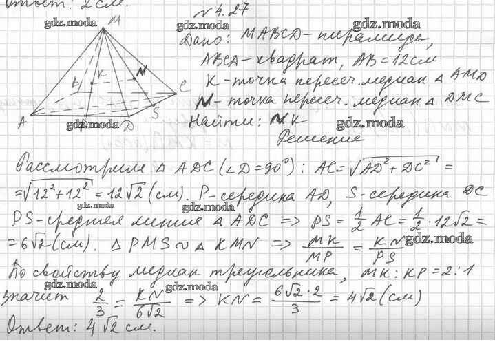 ОТВЕТ на задание № 4.27 Учебник по Геометрии 10 класс Мерзляк Алгоритм успеха Углубленный уровень