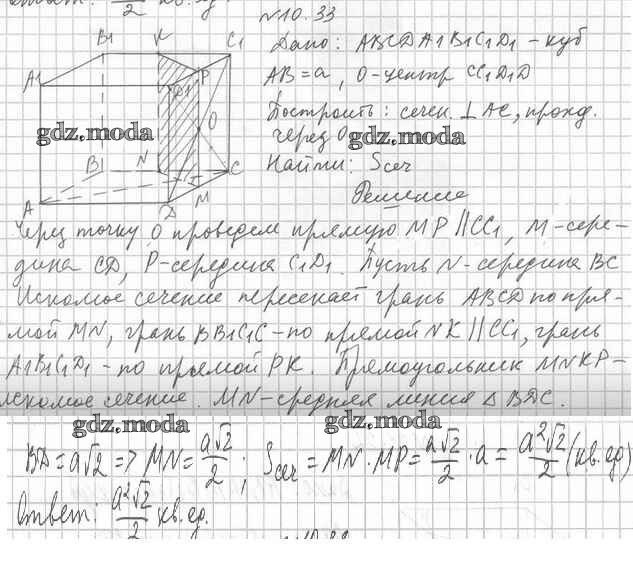 ОТВЕТ на задание № 10.33 Учебник по Геометрии 10 класс Мерзляк Алгоритм успеха Углубленный уровень