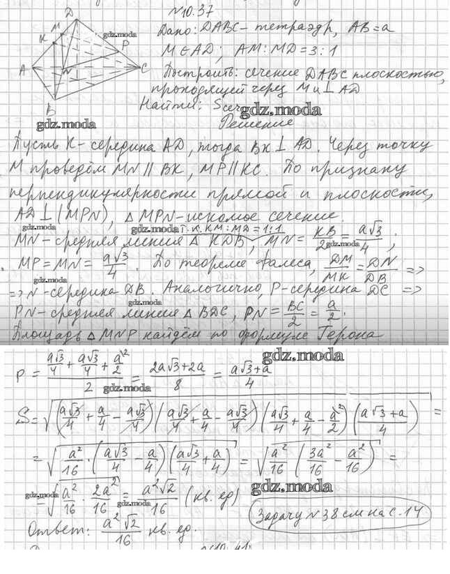 ОТВЕТ на задание № 10.37 Учебник по Геометрии 10 класс Мерзляк Алгоритм успеха Углубленный уровень