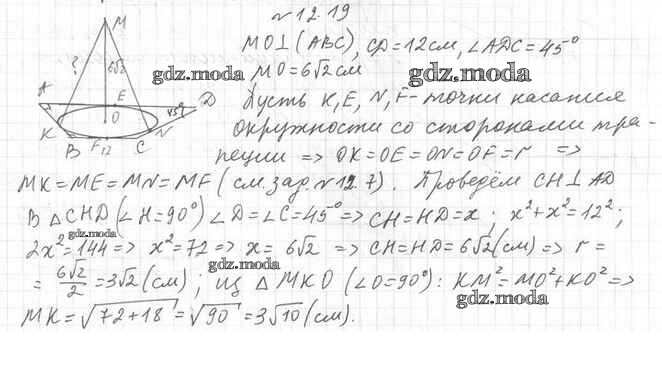 ОТВЕТ на задание № 12.19 Учебник по Геометрии 10 класс Мерзляк Алгоритм успеха Углубленный уровень