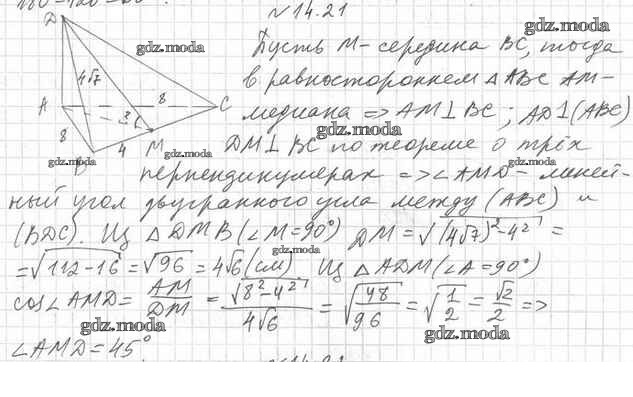 ОТВЕТ на задание № 14.21 Учебник по Геометрии 10 класс Мерзляк Алгоритм успеха Углубленный уровень
