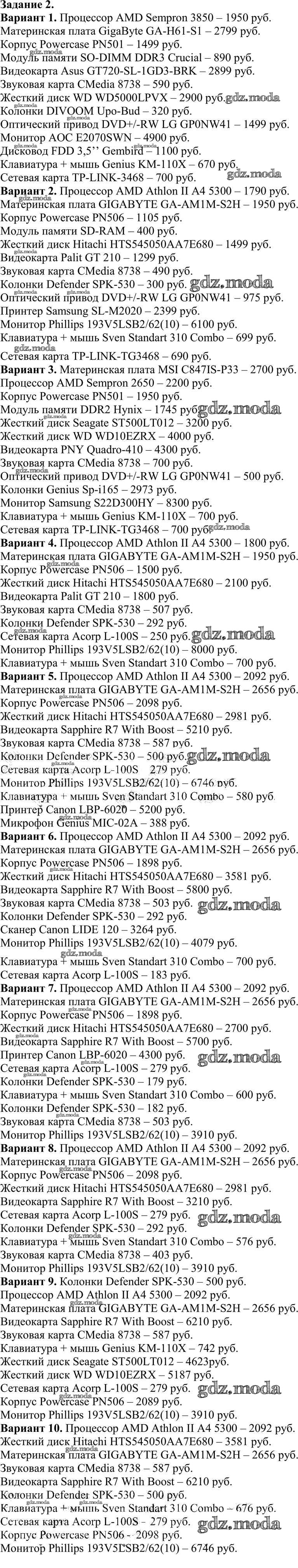 ГДЗ решение к заданию № 2 Информатика 10 класс Семакин И.Г. Бином 2017 Базовый уровень ФГОС бесплатно на гдз.мода!