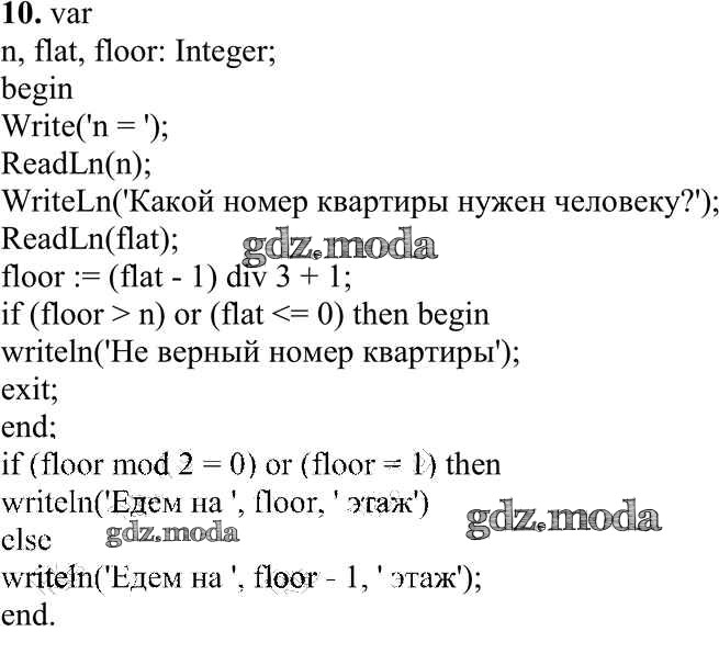 ГДЗ решение к заданию № 10 Информатика 10 класс Семакин И.Г. Бином 2017 Базовый уровень ФГОС бесплатно на гдз.мода!