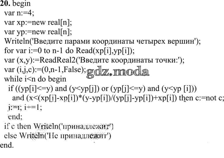 ГДЗ решение к заданию № 20 Информатика 10 класс Семакин И.Г. Бином 2017 Базовый уровень ФГОС бесплатно на гдз.мода!