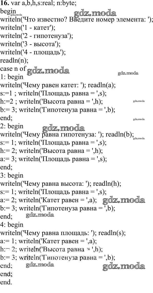 ГДЗ решение к заданию № 16 Информатика 10 класс Семакин И.Г. Бином 2017 Базовый уровень ФГОС бесплатно на гдз.мода!