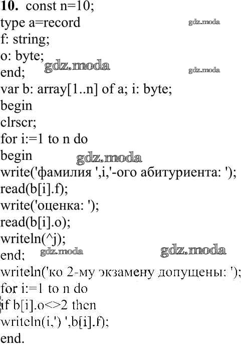 ГДЗ решение к заданию № 10 Информатика 10 класс Семакин И.Г. Бином 2017 Базовый уровень ФГОС бесплатно на гдз.мода!