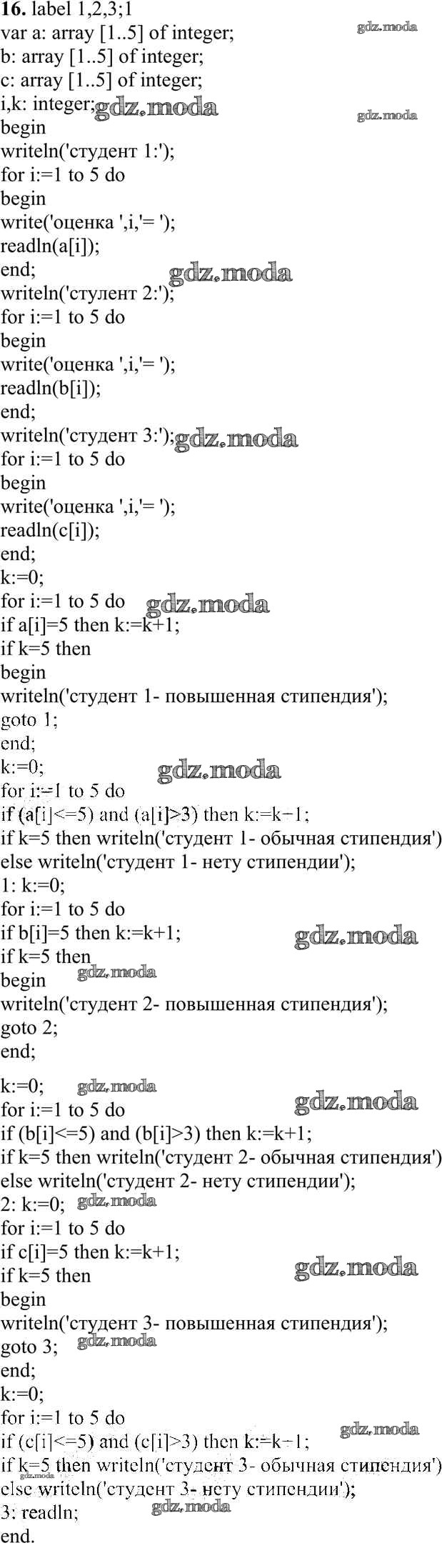 ГДЗ решение к заданию № 16 Информатика 10 класс Семакин И.Г. Бином 2017 Базовый уровень ФГОС бесплатно на гдз.мода!