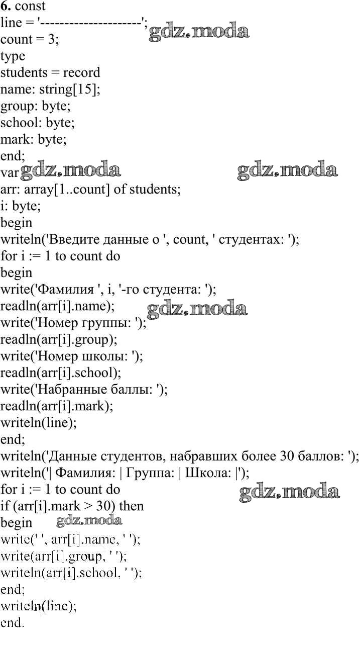 ГДЗ решение к заданию № 6 Информатика 10 класс Семакин И.Г. Бином 2017 Базовый уровень ФГОС бесплатно на гдз.мода!