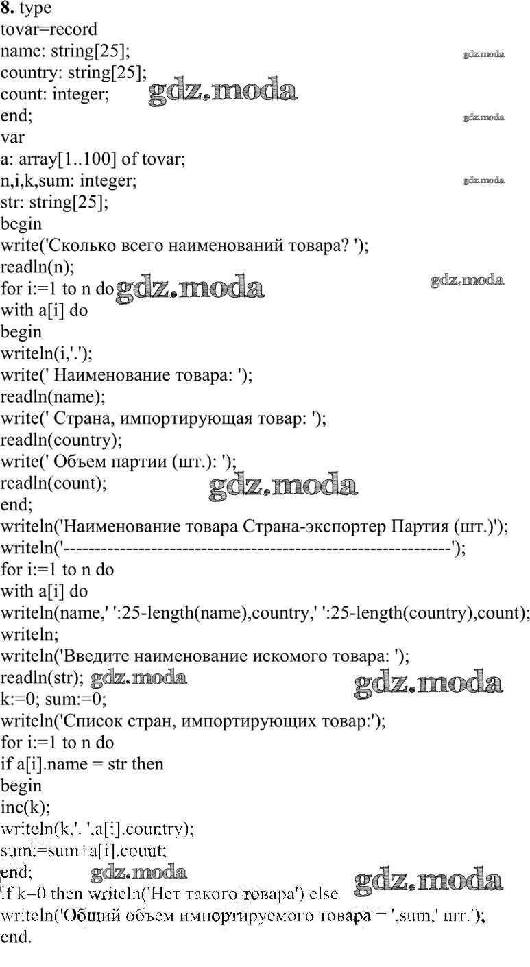 ГДЗ решение к заданию № 8 Информатика 10 класс Семакин И.Г. Бином 2017 Базовый уровень ФГОС бесплатно на гдз.мода!