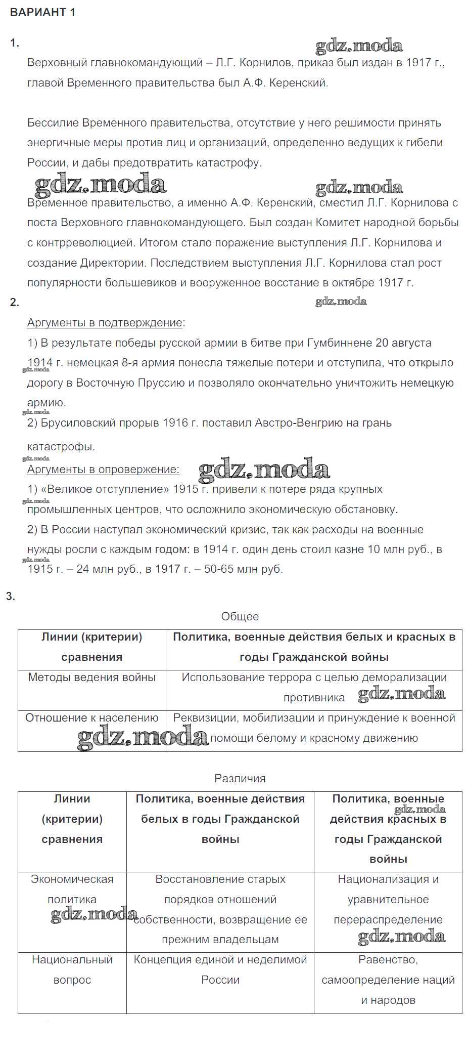 ГДЗ решение к заданию № 1 История России 10 класс контрольные работы Артасов И.А. Просвещение 2017 ФГОС бесплатно на гдз.мода!