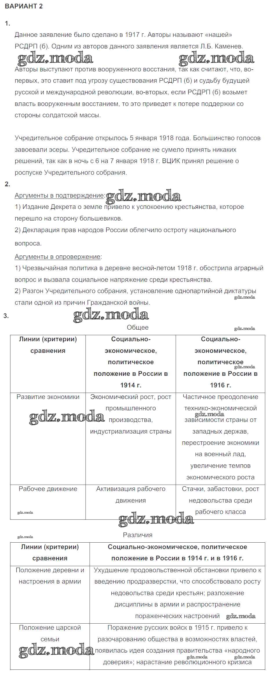 ГДЗ решение к заданию № 2 История России 10 класс контрольные работы Артасов И.А. Просвещение 2017 ФГОС бесплатно на гдз.мода!