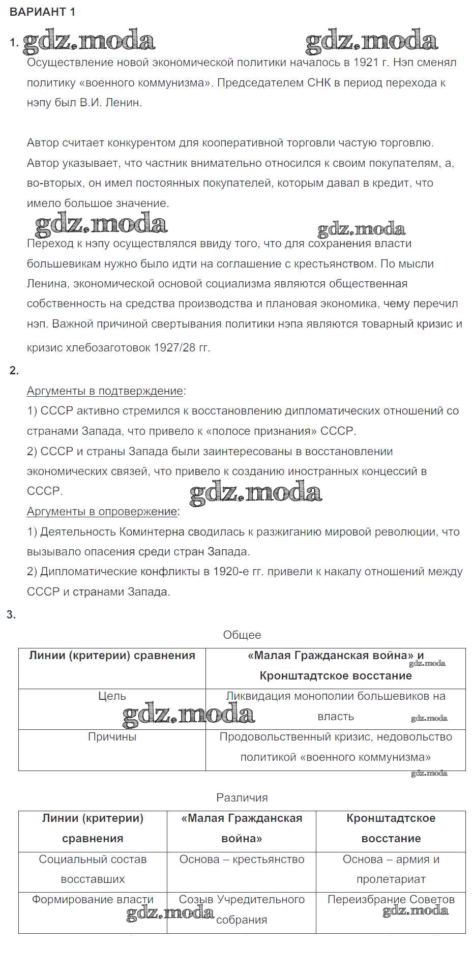 ГДЗ решение к заданию № 1 История России 10 класс контрольные работы Артасов И.А. Просвещение 2017 ФГОС бесплатно на гдз.мода!