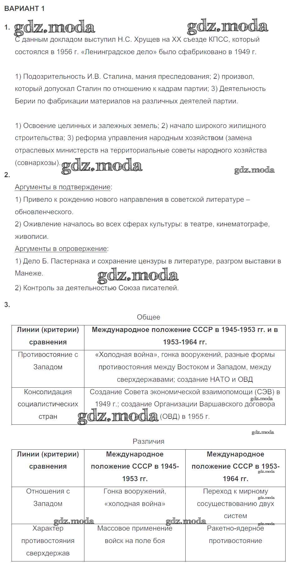 ГДЗ решение к заданию № 1 История России 10 класс контрольные работы Артасов И.А. Просвещение 2017 ФГОС бесплатно на гдз.мода!