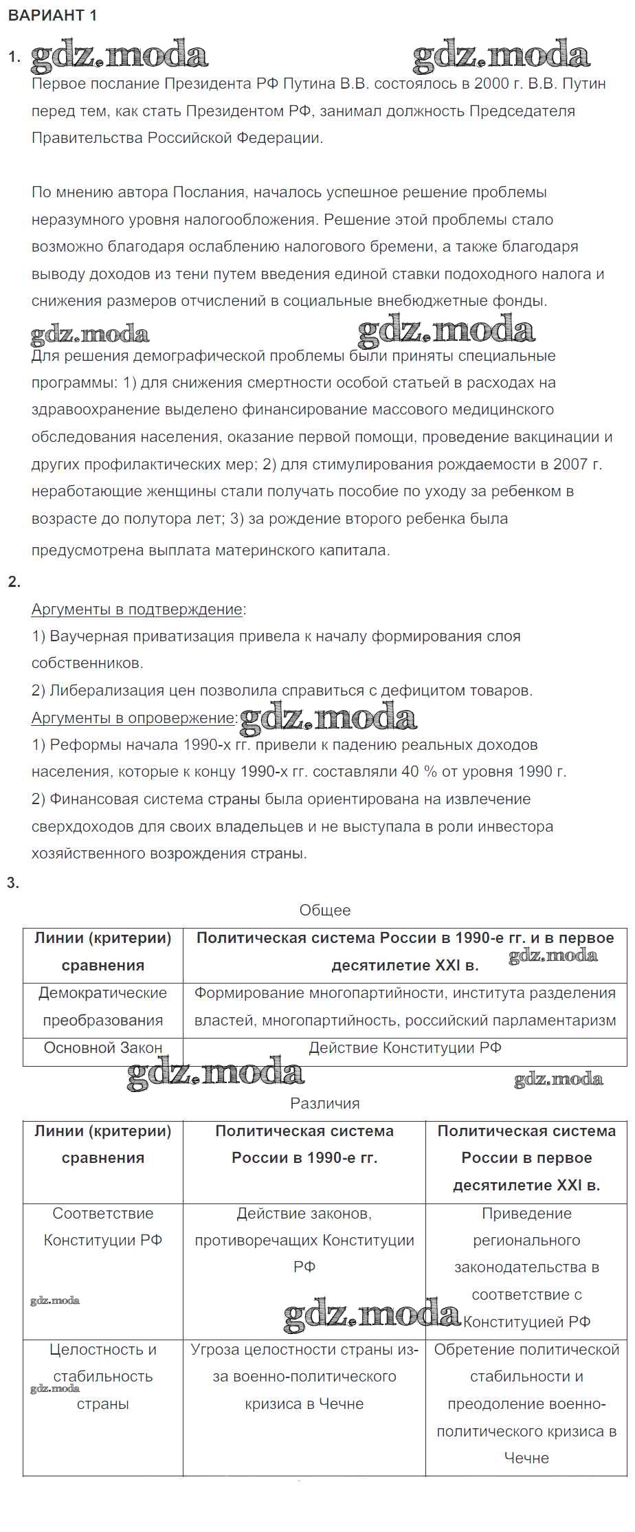 ГДЗ решение к заданию № 1 История России 10 класс контрольные работы Артасов И.А. Просвещение 2017 ФГОС бесплатно на гдз.мода!