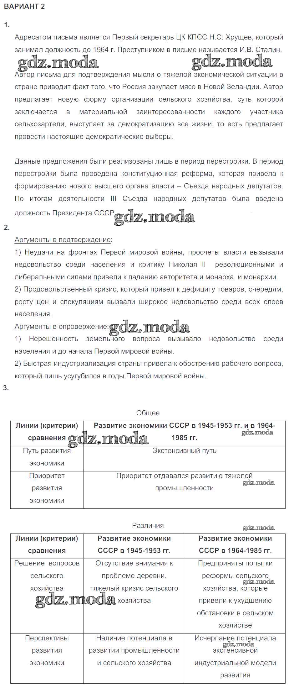 ГДЗ решение к заданию № 2 История России 10 класс контрольные работы Артасов И.А. Просвещение 2017 ФГОС бесплатно на гдз.мода!