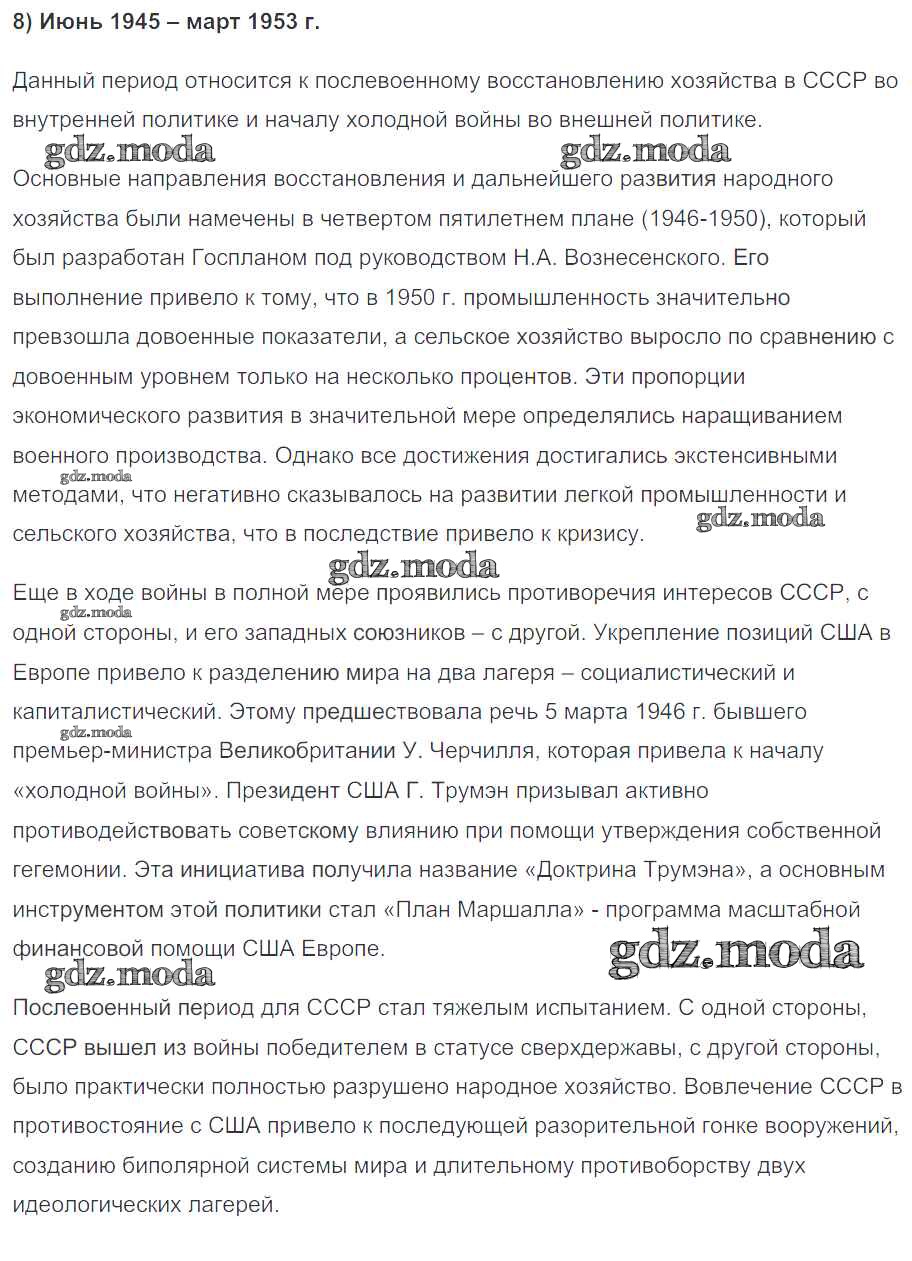 ГДЗ решение к заданию № 8 История России 10 класс контрольные работы Артасов И.А. Просвещение 2017 ФГОС бесплатно на гдз.мода!