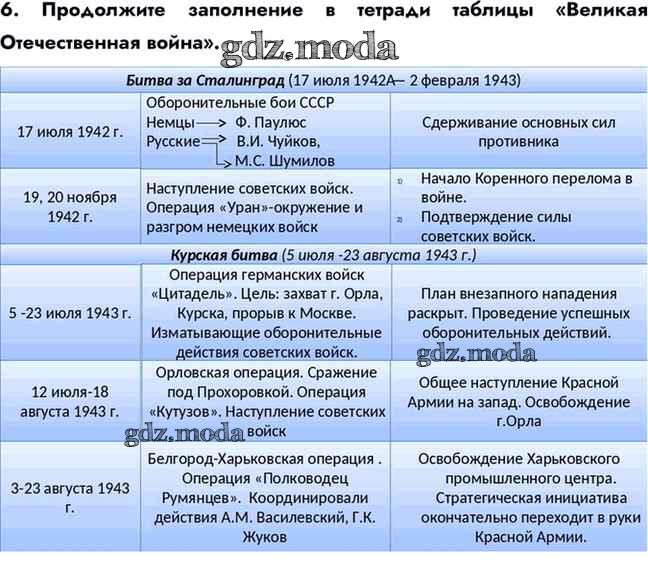 ОТВЕТ на задание № 6 Учебник по Истории 10 класс Горинов