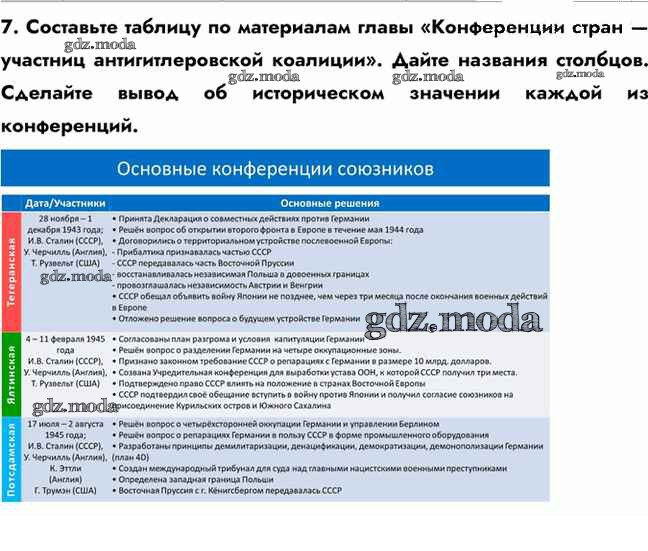 ОТВЕТ на задание № 7 Учебник по Истории 10 класс Горинов