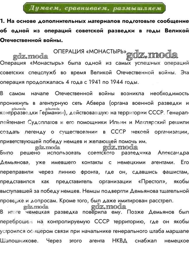 ОТВЕТ на задание № 1 Учебник по Истории 10 класс Горинов
