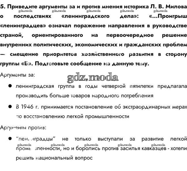 ОТВЕТ на задание № 5 Учебник по Истории 10 класс Горинов