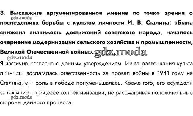 ОТВЕТ на задание № 3 Учебник по Истории 10 класс Горинов