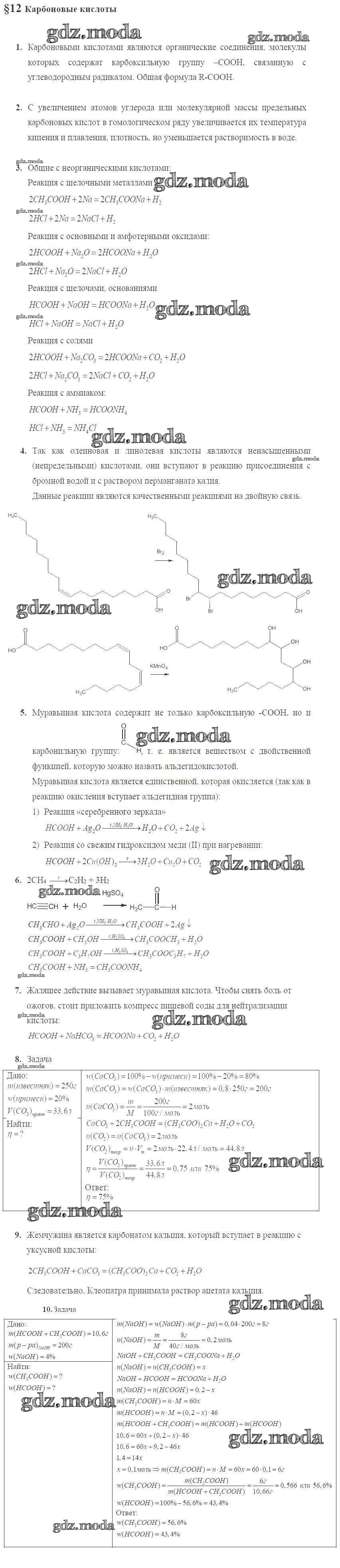 ГДЗ решение к заданию № 12 Химия 10 класс Базовый уровень Габриелян О.С. Дрофа 2015 Базовый уровень ФГОС бесплатно на гдз.мода!