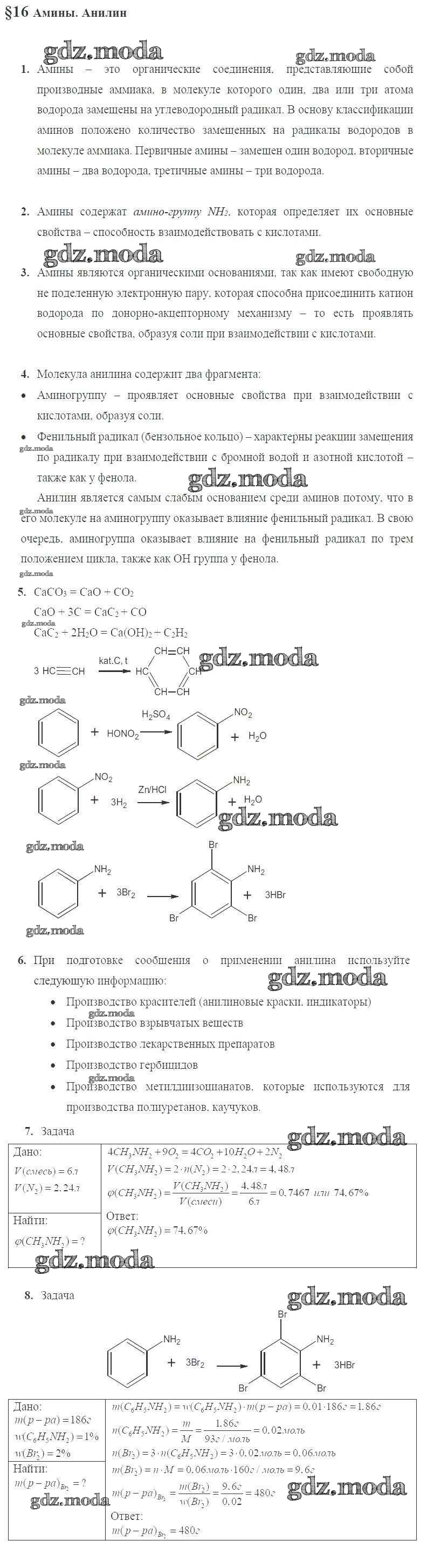 ОТВЕТ на задание № 16 Учебник по Химии 10 класс Габриелян Вертикаль Базовый уровень
