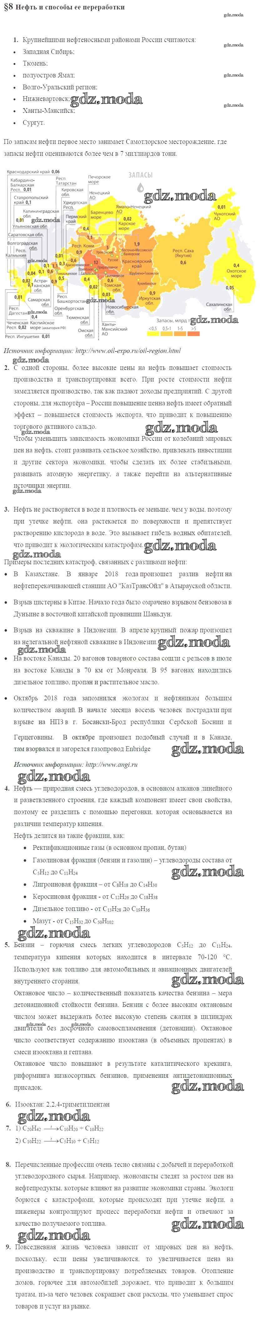 ГДЗ решение к заданию № 8 Химия 10 класс Базовый уровень Габриелян О.С. Дрофа 2015 Базовый уровень ФГОС бесплатно на гдз.мода!