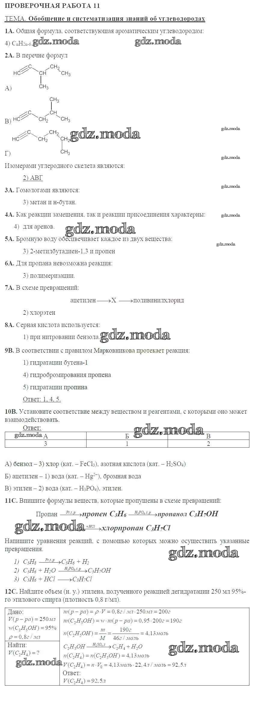 ГДЗ решение к заданию № 11 Химия 10 класс тетрадь для оценки качества знаний Габриелян О.С. Дрофа 2014 ФГОС бесплатно на гдз.мода!
