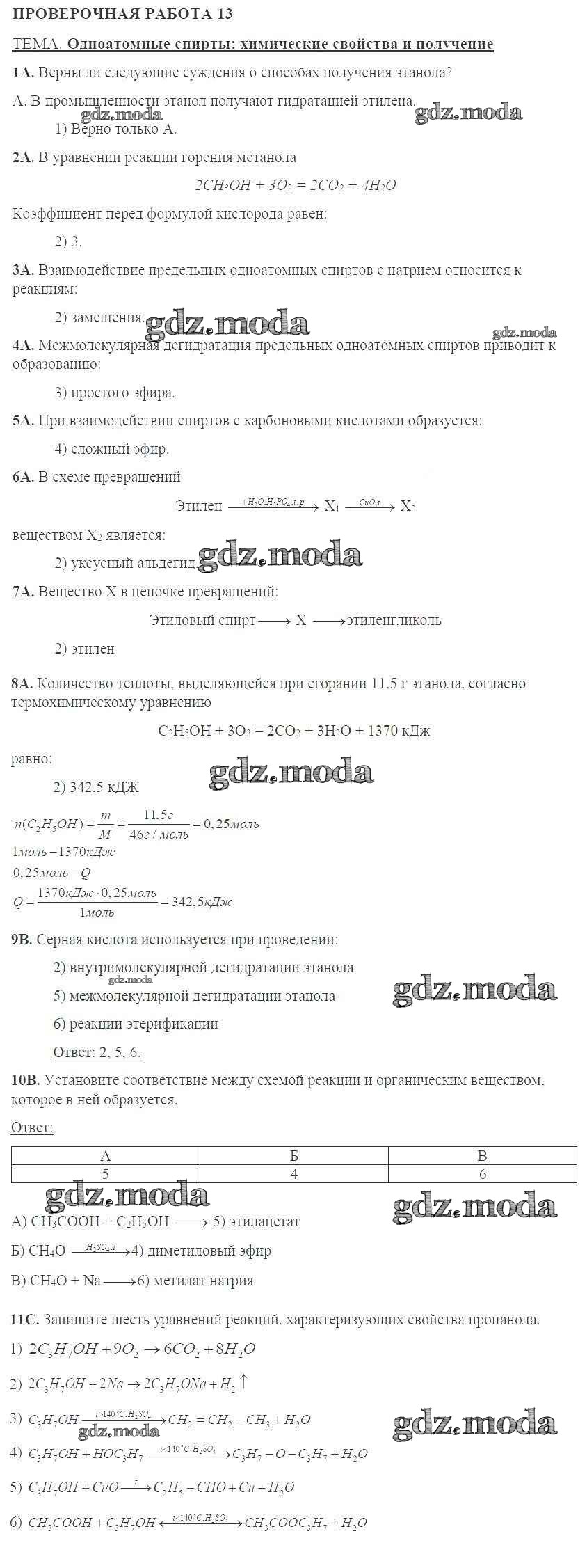 ГДЗ решение к заданию № 13 Химия 10 класс тетрадь для оценки качества знаний Габриелян О.С. Дрофа 2014 ФГОС бесплатно на гдз.мода!
