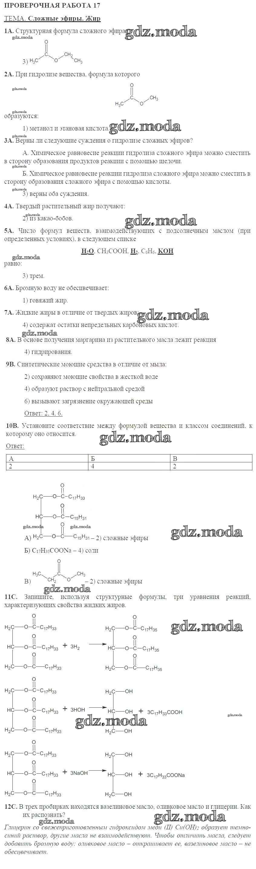 ГДЗ решение к заданию № 17 Химия 10 класс тетрадь для оценки качества знаний Габриелян О.С. Дрофа 2014 ФГОС бесплатно на гдз.мода!