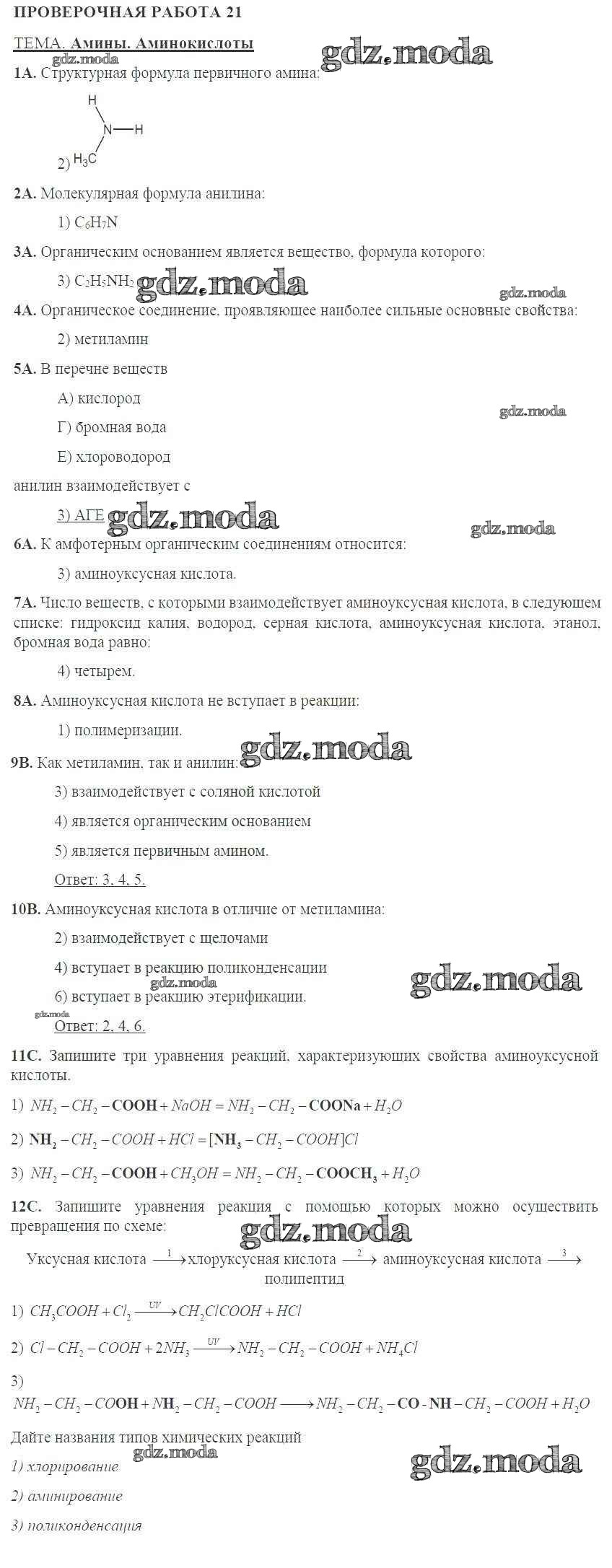ГДЗ решение к заданию № 21 Химия 10 класс тетрадь для оценки качества знаний Габриелян О.С. Дрофа 2014 ФГОС бесплатно на гдз.мода!