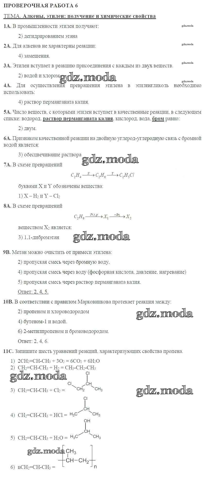 ГДЗ решение к заданию № 6 Химия 10 класс тетрадь для оценки качества знаний Габриелян О.С. Дрофа 2014 ФГОС бесплатно на гдз.мода!