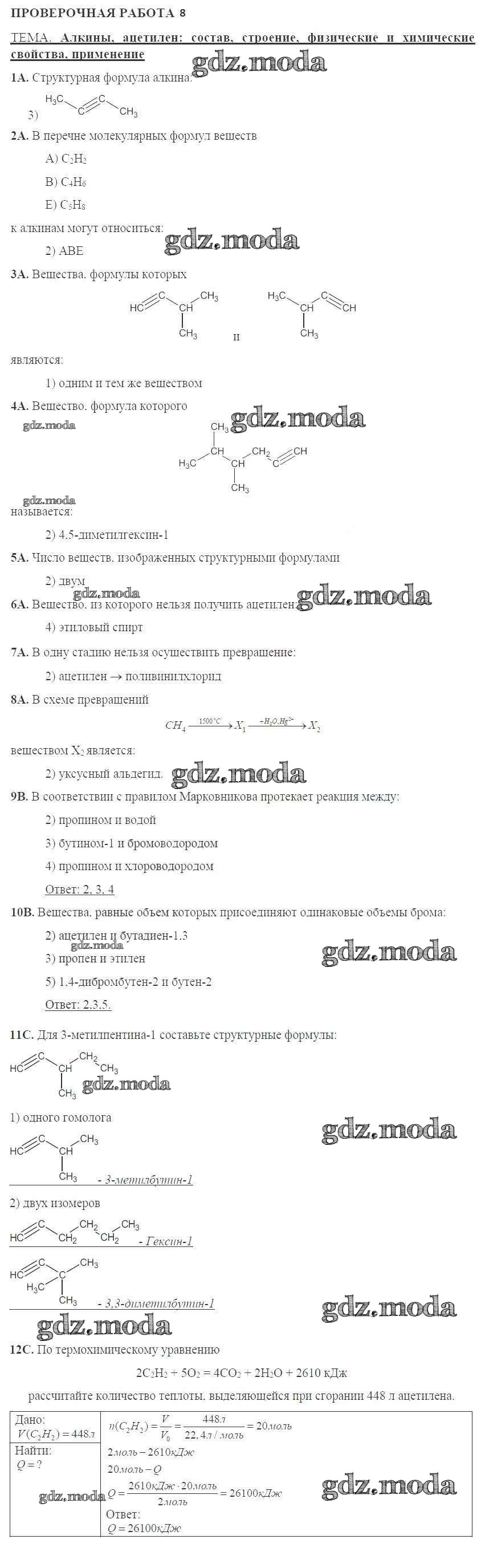 ГДЗ решение к заданию № 8 Химия 10 класс тетрадь для оценки качества знаний Габриелян О.С. Дрофа 2014 ФГОС бесплатно на гдз.мода!
