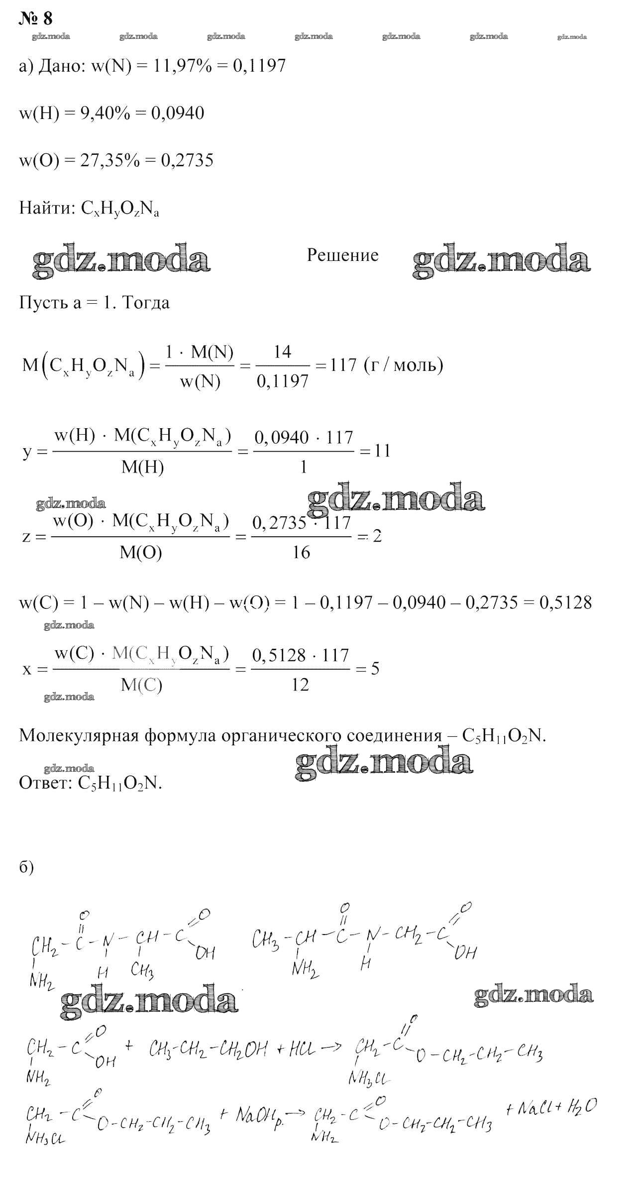 ГДЗ решение к заданию № 8 Химия 10 класс Колевич Т.А. Образование и воспитание 2019 бесплатно на гдз.мода!
