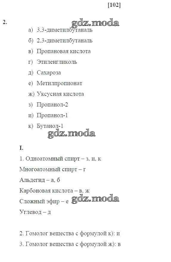 ГДЗ решение к заданию № 102 Химия 10 класс рабочая тетрадь Габриелян О.С. Дрофа 2017 Базовый уровень ФГОС бесплатно на гдз.мода!