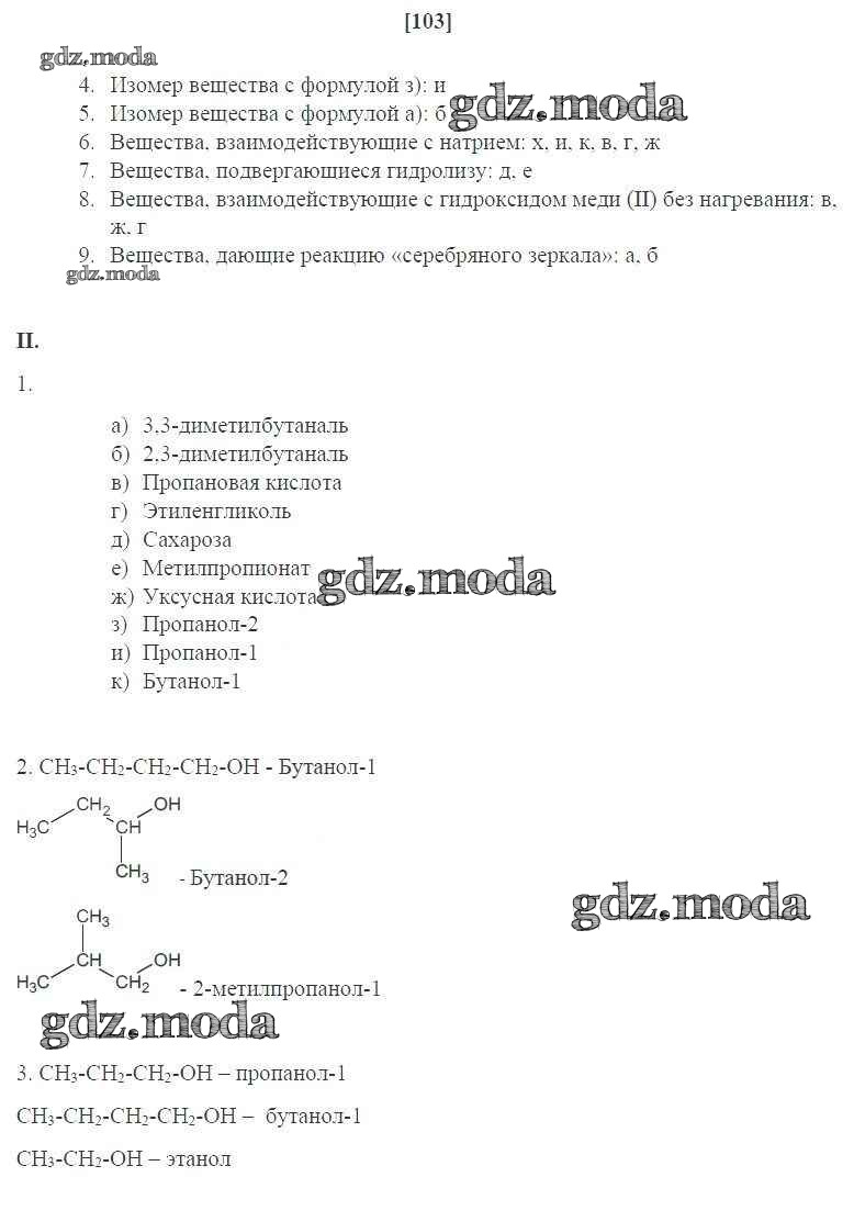 ГДЗ решение к заданию № 103 Химия 10 класс рабочая тетрадь Габриелян О.С. Дрофа 2017 Базовый уровень ФГОС бесплатно на гдз.мода!
